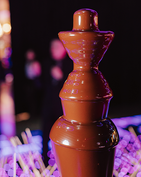 Fuente o cascada comestible servida en la fiesta para un toque indulgente y fotogénico.
