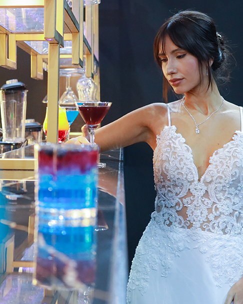 Barra de tragos personalizados preparados por mixólogos profesionales, elaborados a demanda y sin límite.